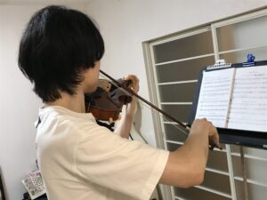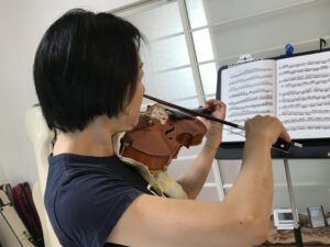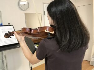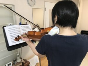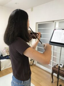 Nさんは「カール・フレッシュ 音階教本」に入り、「きれいな音」「正確な音程」に加え「ポジション移動を上手に」できるよう真剣に弾いていらっしゃいます。