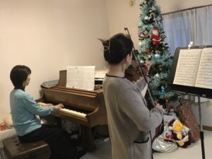 今年の「クリスマスコンサート」では「エックレス作曲 ソナタ」を演奏する予定のNさん。 Nさんは