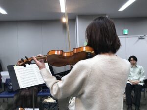 今年の「クリスマスコンサート」では「ホーム・スイート・ホーム」を演奏する予定のKさん。 ヴァ