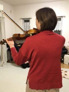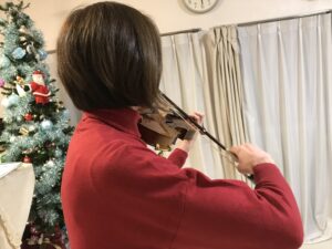 今年の「クリスマスコンサート」では「ホーム・スイート・ホーム」を演奏する予定のKさん。 ヴァ