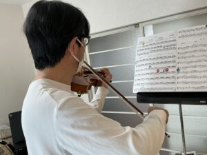 今年の「スプリングコンサート」では「ザイツ作曲 コンチェルト第5番 第三楽章」を演奏する予定のMさん。