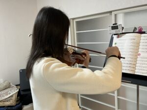 今年の「スプリングコンサート」でもアンサンブル中心に参加する予定のOさん。 ヴァイオリンレッ