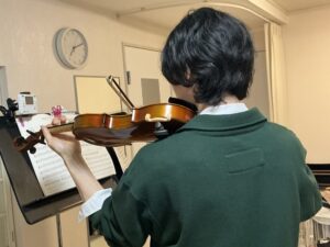 今年の「スプリングコンサート」でもアンサンブル中心に参加する予定のOさん。 ヴァイオリンレッ